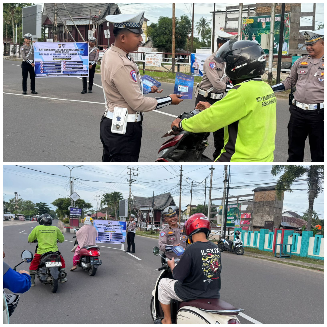SKNews, Seruyan – Dalam rangka Operasi Keselamatan Telabang Tahun 2026, Satuan Lalu Lintas (Satlantas) Polres Seruyan intensif melaksanakan kegiatan preemtif berupa pembagian brosur dan pamflet serta sosialisasi kamseltibcarlantas.