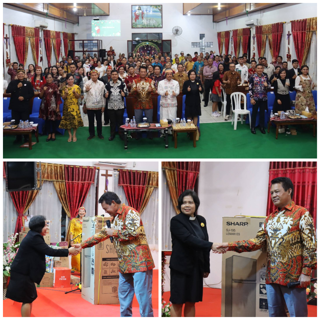 Bupati Seruyan, Ahmad Selanorwanda, menghadiri perayaan Natal Jemaat GKE Imanuel Kuala Pembuang, sekaligus memberikan hadiah undian utama berupa 1 unit kulkas 2 pintu. Foto: Said SK_News.