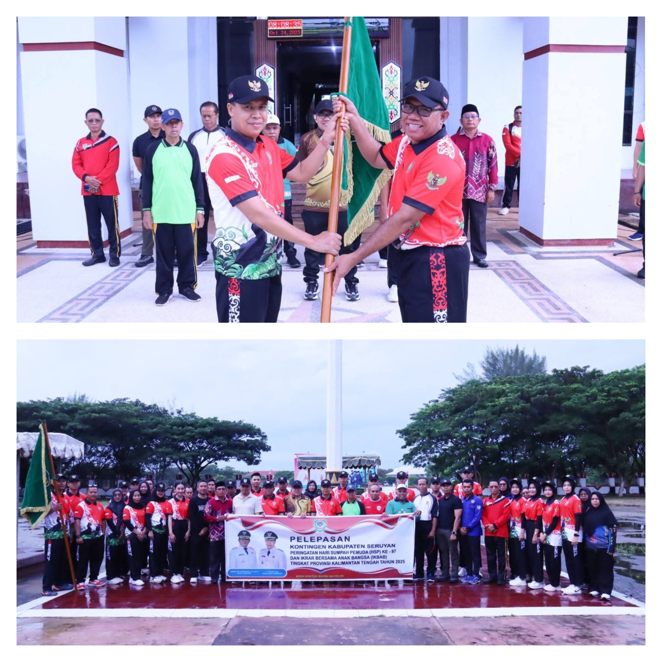 SKNews, Seruyan – Wakil Bupati Seruyan, Guru Supian, melepas kontingen asal Kabupaten Seruyan yang akan mengikuti kegiatan Hari Sumpah Pemuda (HSP) ke-97 dan Ikrar Bersama Anak Bangsa (IBAB) Tingkat Provinsi Kalimantan Tengah tahun 2025, kegiatan dilaksanakan di Kabupaten Sukamara.