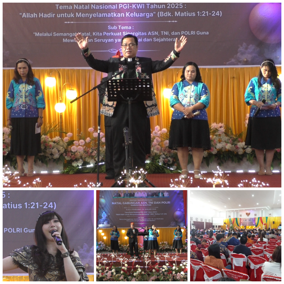 SKNews, Seruyan – Dalam rangka mewujudkan Kabupaten Seruyan yang damai dan sejahtera, para Aparatur Sipil Negara (ASN), TNI-Polri, dan elemen masyarakat melaksanakan perayaan Natal secara bersama, ibadah Natal gabungan tersebut sangat meriah karena menghadirkan penyanyi Maria Priscilla.