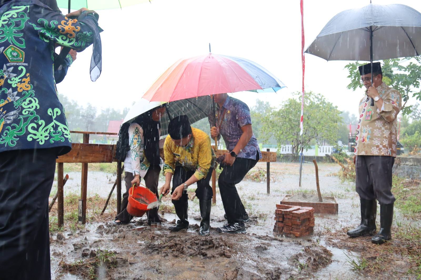 Meski Hujan, Peletekkan Batu Pertama Mushola Kemenag Seruyan Tetap Berjalan