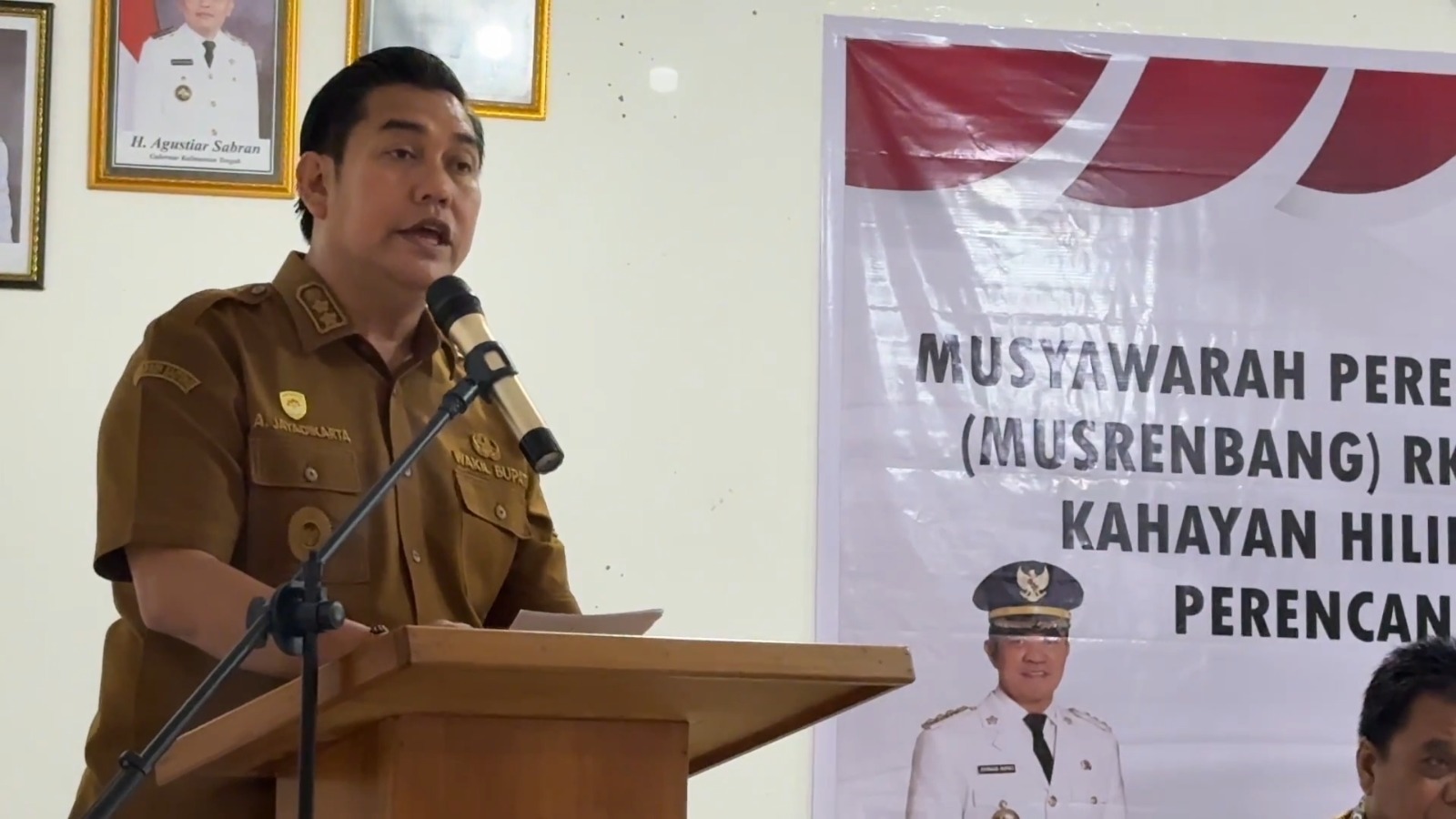 Wakil Bupati Pulang Pisau, Ahmad Jayadikarta saat membacakan sambutan menyampaikan bahwa Musrenbang adalah forum diskusi target pembangunan berjangka.