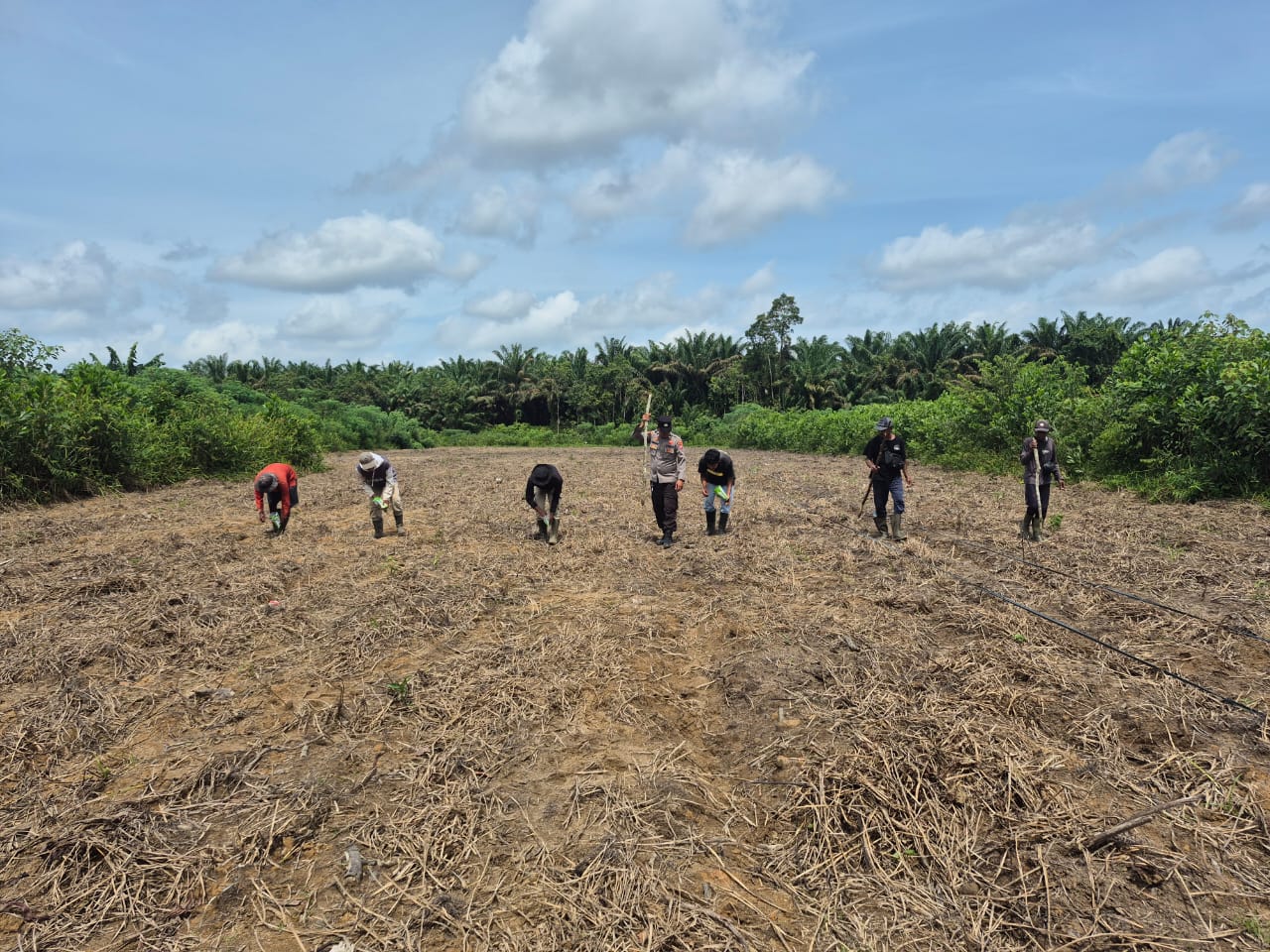 Polsek Danau Sembuluh Dukung Program Swasembada Pangan Melalui Penanaman Jagung di Lahan PT HMBP